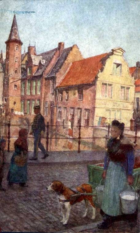 If you climb to the top of some dune, you will see before you a wide plain stretching out as far as the eye can reach. This part of Belgium is called Flanders. It is all flat, with canals, and long, straight roads, paved with stones, running across it. There are rows of tall poplar-trees or willows, which are bent slightly towards the east, for the wind blows oftenest from the west, small patches of woodland, gardens, and many sluggish streams. The fields, which have no fences or hedges round them, are large and well tilled, some bearing fine crops of wheat, rye, or potatoes and turnips, while others are rich pasture-lands for sheep and cattle. The whole of this Flemish Plain, as it is called, is dotted with farm-houses and cottages. There are a great many villages, and in the distance rise the roof-tops and the towers and spires of famous old towns.