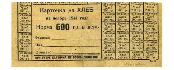 Хлеб выдавали по карточкам — кто работал 600 грамм, детям — 400 грамм, иждивенцам — 300 гр.