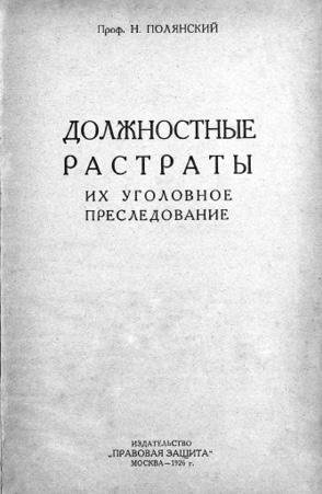 Полянский Н.Н. Должностные растраты: их уголовное преследование. М.: Правовая защита, 1926. 42 с.