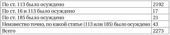 Громадное большинство осужденных, заполнивших нашу анкету, были осуждены по 113 статье УК.