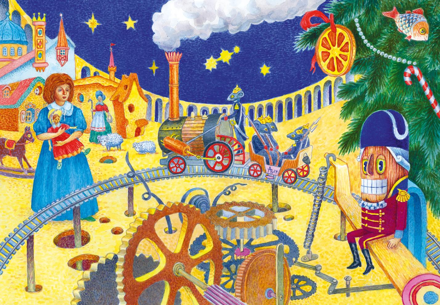 Двадцать четвёртого декабря детям советника медицины Штальбаума весь день не разрешалось входить в проходную комнату, а уж в смежную с ней гостиную их совсем не пускали. В спальне, прижавшись друг к другу, сидели в уголке Фриц и Мари. Уже совсем стемнело, и им было очень страшно, потому что в комнату не внесли лампы, как это и полагалось в сочельник. Фриц таинственным шёпотом сообщил сестрёнке (ей только что минуло семь лет), что с самого утра в запертых комнатах чем-то шуршали, шумели и тихонько постукивали. А недавно через прихожую прошмыгнул маленький тёмный человечек с большим ящиком под мышкой; но Фриц наверное знает, что это их крёстный, Дроссельмейер. Тогда Мари захлопала от радости в ладоши и воскликнула: