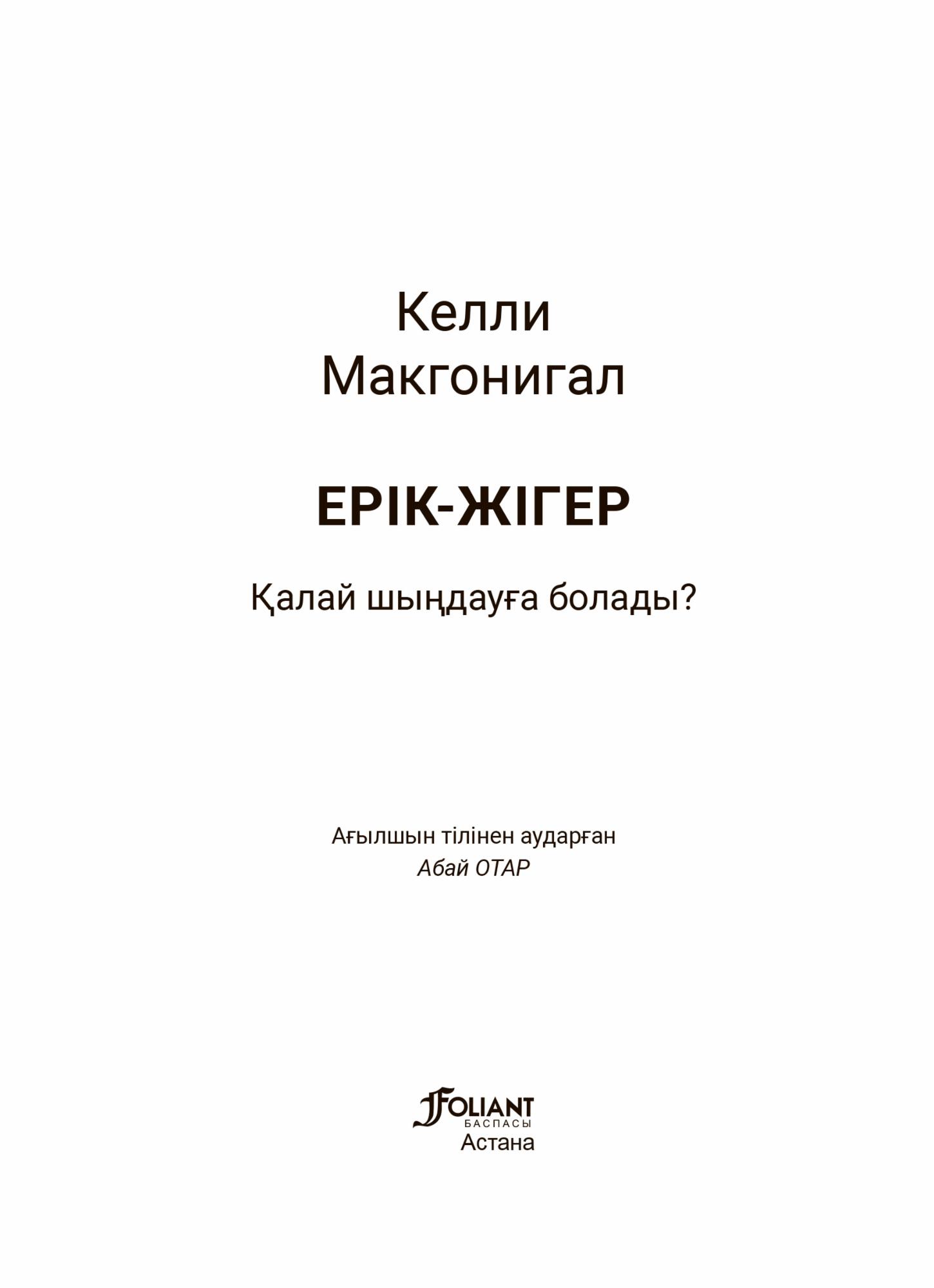 Стэнфорд медицина мектебінің денсаулықты жақсарту бағдарламасының психологі және педагогі ретінде мен адамдарға күйзеліспен күресуге және саналы шешім қабылдауға көмектесемін. Жылдар бойы адамдардың өз ойын, сезімін, денесі мен әдетін өзгертуде қиналғанын көрген соң олардың ерік-жігер туралы сенімі табысқа жетуіне кедергі келтіріп, күйзеліске түсіретінін аңғардым. Ғылыми зерттеу оларға көмектесе алатынына қарамастан, мұндай деректер көпшілікке белгілі емес. Оның орнына, адамдар өзін бақылау жөніндегі ескірген стратегияға иек артады. Көпшілік қолданатын мұндай тәсілдердің тиімсіз ғана емес, керісінше ойға іріткі салып, бақылауды жоғалтып алуға әкелетінін бірнеше мәрте көрдім.
