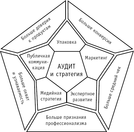На рис. 1 изображен наш основной инструмент построения личного бренда – многоуровневая звезда. Пять ее лучей – упаковка, маркетинг, экспертное развитие, медийная стратегия и публичная коммуникация позволят управлять репутацией практически в автоматическом режиме.