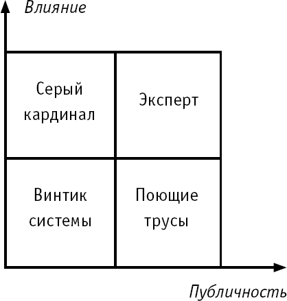 Итак, у нас есть две шкалы – одна показывает уровень влияния, другая – публичности (= известности, популярности).
