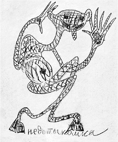 Это слово не придумано Сологубом: еще в 1907 году в рецензии на первое отдельное издание романа Александр Блок, его внимательный читатель, писал: «И вот, на какой-то там странице… появляется странное маленькое существо, называемое Недотыкомка. Много и умно говорит о ней критика; Горнфельд пишет о том, что это слово областное, что в толковом словаре оно означает что-то вроде недотроги. Но у Сологуба, как признает и Горнфельд, она обозначает совсем другое. Она бегает под стульями, хихикает, появляется и на церковном амвоне, прикидывается тряпкой, лентой, веткой, флагом, тучкой, собачкой…» Впервые Недотыкомка возникает у Сологуба в стихотворении 1899 года, то есть написанном в разгар работы над романом, — и уже там ей приданы основные характеристические черты: