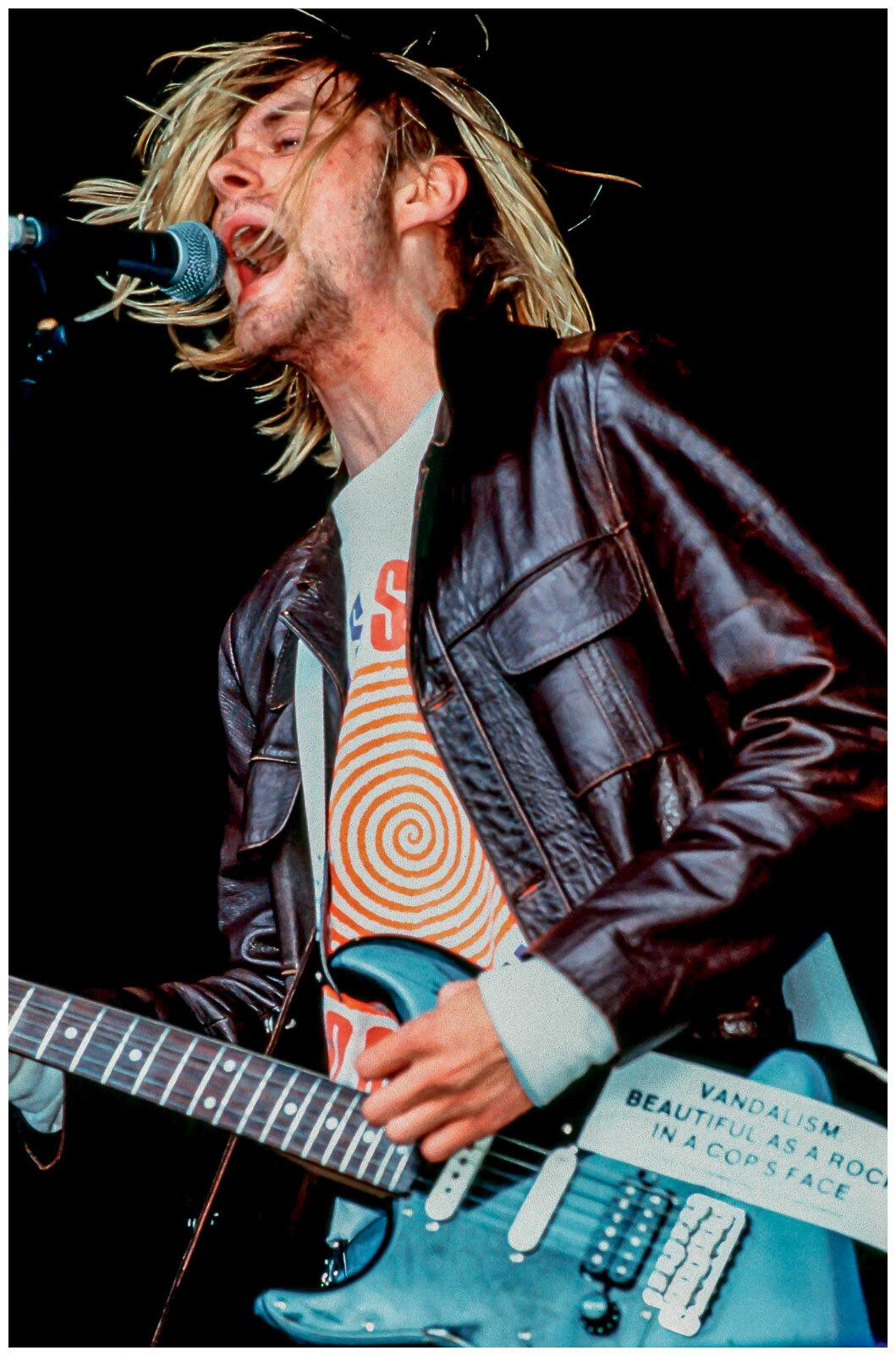 [Курт Кобейн выступает на фестивале в Рединге в Англии 23 августа 1992 года.]