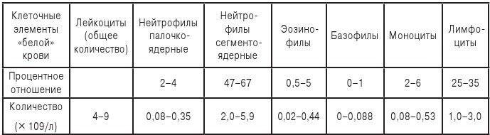 В норме содержание лейкоцитов (всех видов – см. далее «Лейкоцитарная формула») в крови составляет 4–9 × 109/л.