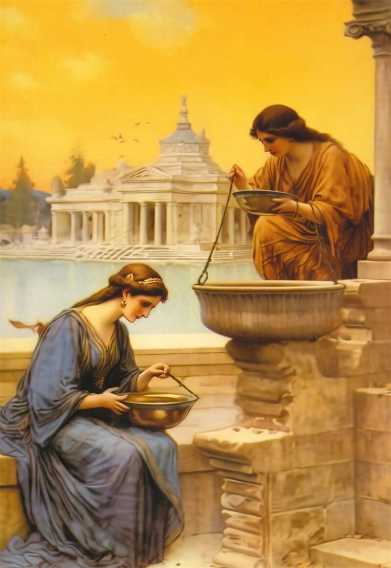 Пируют боги. Дочь Зевса, юная Геба [15], и сын царя Трои Ганимед, любимец Зевса, получивший от него бессмертие, подносят им амброзию и нектар – пищу и напиток богов. Прекрасные хариты и музы [16] услаждают их пением и танцами. Взявшись за руки, водят они хороводы, а боги любуются их легкими движениями и дивной, вечно юной красотой. Веселее становится пир олимпийцев. На этих пирах решают боги все дела, на них определяют они судьбу мира и людей.