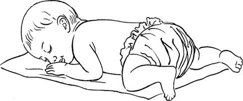С 10‑12‑го дня жизни начните первые тренировки малыша, выкладывая его на живот. Повторяйте их несколько раз в день и лучше всего перед кормлением. На самом деле ребенок может, конечно, не понять, зачем его переложили в столь странное и не совсем удобное для него положение – ведь головку он поднимать еще не умеет. Но именно лежание на животе способствует отхождению газов, а также развивает мышцы живота и стимулирует движения головой. Начните в первые дни с 3–5 минут, постепенно увеличивая время до 15–20.