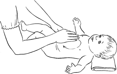 • Сделайте малышу легкий массаж животика, поглаживая его круговыми движениями по часовой стрелке;