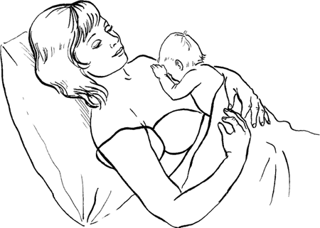 положите его голым пузиком на свой обнаженный живот, займите при этом полулежачее положение, прикройте сверху одеяльцем и поглаживайте его спинку. Эта процедура «кожа к коже», «живот к животу» имеет к тому же благоприятное психотерапевтическое воздействие и на ребенка, и на маму.