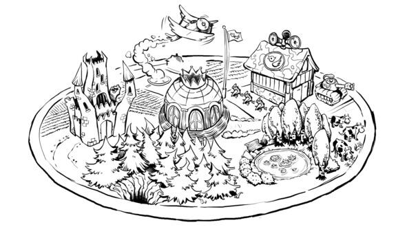 Но это было сомнительно. Солнце вообще-то ничего не боялось. Оно давно уже изучило всю Нопландию вдоль и поперёк, побывало в самых дальних её уголках и могло даже с закрытыми глазами рассказать, что и где находится. Вот, например, в самом центре страны высится королевский дворец. Это пуп Земли. Он и выглядит словно пуп. Только выпуклый, а не впуклый. И ещё его украшает смотровая площадка в виде королевской короны.