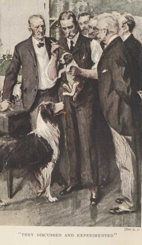 Mrs. Gray was thirty, and so sweet and so lovely, you cannot imagine it; and Sadie was ten, and just like her mother, just a darling slender little copy of her, with auburn tails down her back, and short frocks; and the baby was a year old, and plump and dimpled, and fond of me, and never could get enough of hauling on my tail, and hugging me, and laughing out its innocent happiness; and Mr. Gray was thirty-eight, and tall and slender and handsome, a little bald in front, alert, quick in his movements, business-like, prompt, decided, unsentimental, and with that kind of trim-chiseled face that just seems to glint and sparkle with frosty intellectuality! He was a renowned scientist. I do not know what the word means, but my mother would know how to use it and get effects. She would know how to depress a rat-terrier with it and make a lap-dog look sorry he came. But that is not the best one; the best one was Laboratory. My mother could organize a Trust on that one that would skin the tax-collars off the whole herd. The laboratory was not a book, or a picture, or a place to wash your hands in, as the college president’s dog said—no, that is the lavatory; the laboratory is quite different, and is filled with jars, and bottles, and electrics, and wires, and strange machines; and every week other scientists came there and sat in the place, and used the machines, and discussed, and made what they called experiments and discoveries; and often I came, too, and stood around and listened, and tried to learn, for the sake of my mother, and in loving memory of her, although it was a pain to me, as realizing what she was losing out of her life and I gaining nothing at all; for try as I might, I was never able to make anything out of it at all.