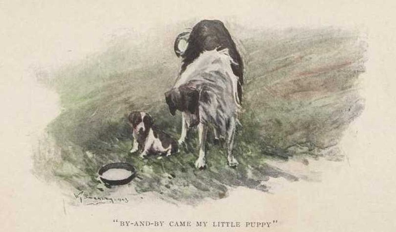 Other times I lay on the floor in the mistress’s work-room and slept, she gently using me for a foot-stool, knowing it pleased me, for it was a caress; other times I spent an hour in the nursery, and got well tousled and made happy; other times I watched by the crib there, when the baby was asleep and the nurse out for a few minutes on the baby’s affairs; other times I romped and raced through the grounds and the garden with Sadie till we were tired out, then slumbered on the grass in the shade of a tree while she read her book; other times I went visiting among the neighbor dogs—for there were some most pleasant ones not far away, and one very handsome and courteous and graceful one, a curly-haired Irish setter by the name of Robin Adair, who was a Presbyterian like me, and belonged to the Scotch minister.