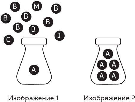 Изображение 1. Когда нам недостает A, мы пытаемся восполнить этот недостаток с B, С, J или M.