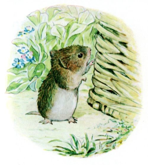 "When it rains, I sit in my little sandy burrow and shell corn and seeds from my Autumn store. I peep out at the throstles and blackbirds on the lawn, and my friend Cock Robin. And when the sun comes out again, you should see my garden and the flowers—roses and pinks and pansies—no noise except the birds and bees, and the lambs in the meadows."