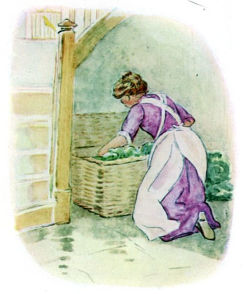 Timmy Willie, who had lived all his life in a garden, was almost frightened to death. Presently the cook opened the hamper and began to unpack the vegetables. Out sprang the terrified Timmy Willie.