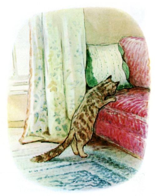 It was just the same next day. An excellent breakfast was provided—for mice accustomed to eat bacon; but Timmy Willie had been reared on roots and salad. Johnny Town-mouse and his friends racketted about under the floors, and came boldly out all over the house in the evening. One particularly loud crash had been caused by Sarah tumbling downstairs with the tea-tray; there were crumbs and sugar and smears of jam to be collected, in spite of the cat.