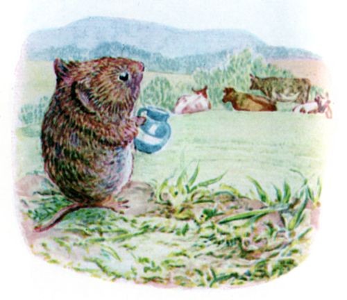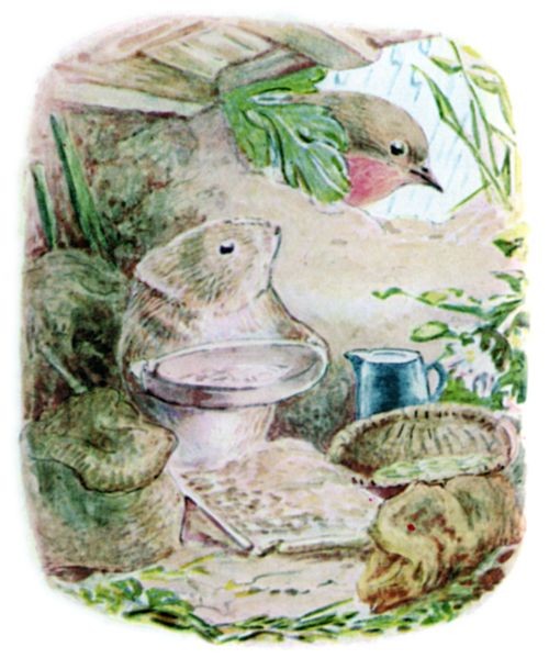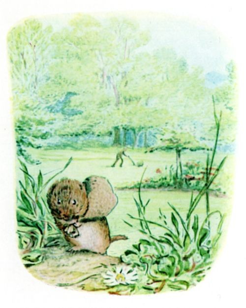 "When it rains, I sit in my little sandy burrow and shell corn and seeds from my Autumn store. I peep out at the throstles and blackbirds on the lawn, and my friend Cock Robin. And when the sun comes out again, you should see my garden and the flowers—roses and pinks and pansies—no noise except the birds and bees, and the lambs in the meadows."