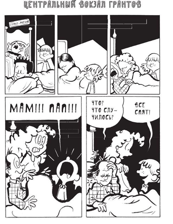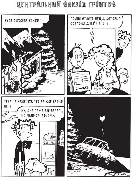 Главными героями «Центрального вокзала Грантов» выступали пятеро детей, двое родителей и собака – вымышленная семья, прообразом которой стали мы, реальная семья Грантов. Комикс печатали в газетах по всей стране и по всему миру, и в нем рассказывалось о повседневной жизни героев – работе и неудачах, проблемах с учителями и ссорах сестер и братьев. Со временем комикс отошел от избитых шуток и излишне мультяшных иллюстраций и постепенно стал более серьезным, юмор – более остроумным, а иногда мама вела одну сюжетную линию в течение нескольких недель. К тому же, в отличие от большинства юмористических комиксов, в которых персонажи словно застыли – Гарфилд вечно ненавидел понедельники и лазанью; Чарли Браун всегда промахивался по футбольному мячу; Джейсон, Пейдж и Питер Фокс застряли в пятом, девятом и одиннадцатом классах соответственно, – жизнь в «Центральном вокзале Грантов» текла в реальном времени. У каждого из нас был свой персонаж, и все они значительно изменились за последние двадцать пять лет.