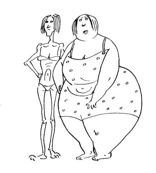 Не нужно думать, что расстройствами пищевого поведения страдают только истощенные анорексией юные девушки или страдающие крайними формами ожирения «клинические обжоры». Стройные мужчины и женщины мучительно не могут уснуть, потому что не сдержались и объелись или, наоборот, только что сели на очередную диету и ужасно хотят есть. Ровно так же они страдают в примерочных магазинов и у зеркала, потому что «чувствуют себя жирными».