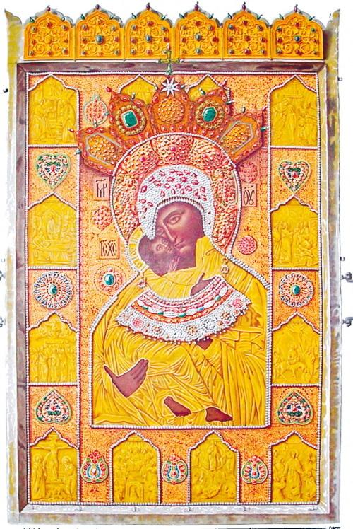 Владимирская Богоматерь в полном драгоценном окладе. Рисунок Федора Солнцева из издания «Древности Российского государства», 1846—1853