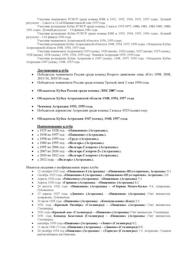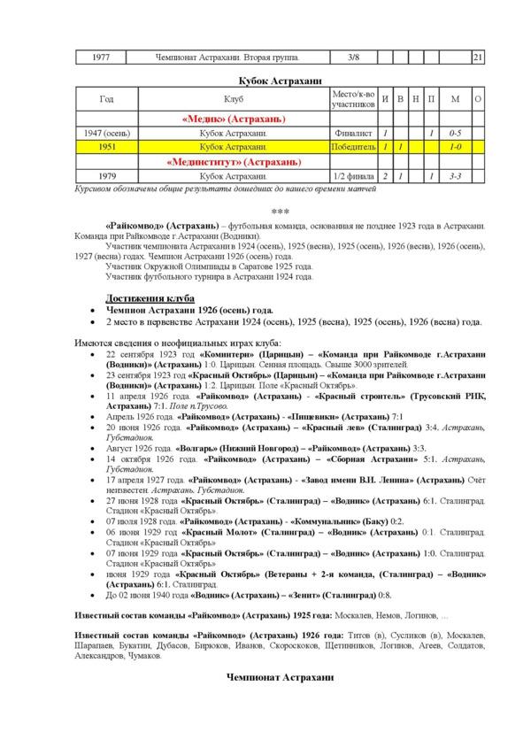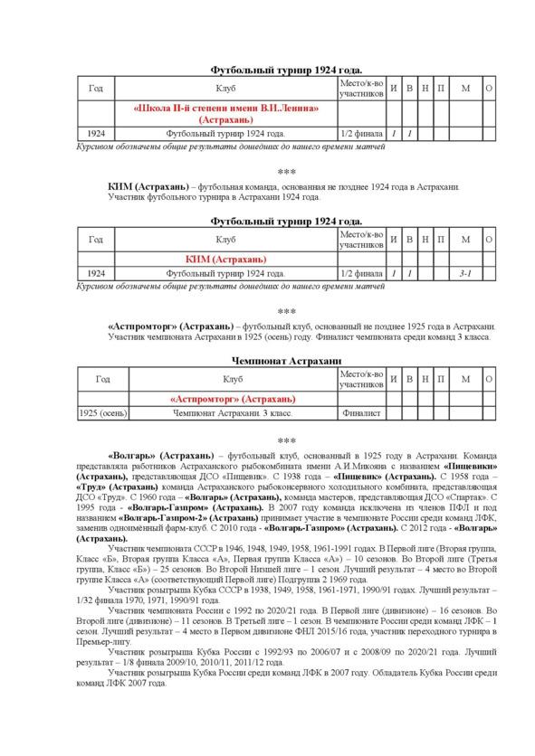 Данное издание появилось на свет только благодаря общей работе (авторов изданий и всех, кто помогал в сборе материала) по сохранению истории футбола Астраханской области таких профессионалов в своём деле как И.А.Морозов, Ю.Н.Попов, А. Топлов, Д. Иванов, С. Андрюков, В.Ю.Висягин, О. Вахромов, К. Демидов, А. Каргин, Г.И.Вертегел, Н.И.Травкин, В.А.Андреев, Ю.А.Кошель, Р.Д.Савелов, А.Ф.Толстопятов, П.В.Полуничев, В.Н.Федоров, А.Ю.Яковлев, А.А.Бояренко, В.Н.Конончук, В. Шкробышев, И.С.Добронравов, В. Владимиров, А. Синев, В. Бурляев, С.М.Воробьёв, С.С.Кирилловых, А. Маркишов, В.А.Глубоков, Е.Ю.Вотинцев, С. Малышев, В. Беликов, С. Лежнева; организаторов и основных ведущих футбольных интернет-сайтов: https://footballfacts.ru/ (Footballfacts. Футбольная статистика и не только), http://www.goalstream.org/season/1048202/b557ba4f#/main (Goalstream. Федерация футбола Астраханской области), http://regional-football.ru/ (Региональный футбол России), http://www.rsssf.com/ (Фонд статистики спортивного футбола), http://lena-dvorkina.narod.ru/FOOTBALL_2013/FC_Russia/ArkhObl4.htm (История футбольных клубов), https://www.footbook.ru/ (Сайт футбольной статистики), http://wildstat.ru/ (Футбольные результаты и статистика); https://kwadra.ru/ (Футбол в протоколах); https://fc-dynamo.ru/cup/ (Все матчи Кубка СССР и России); https://vk.com/club174604624 (Нелиговый и юношеский футбол СССР); https://www.flashscore.com/ (flashscore.com); http://www.ffao.ru/ (Федерация футбола Астраханской области); всех спортивных журналистов Астраханских СМИ — «Коммунист», «Астраханский вестник», «Астрахань», «Волга».