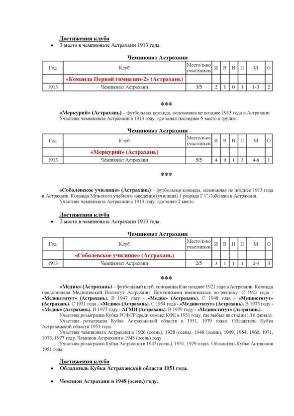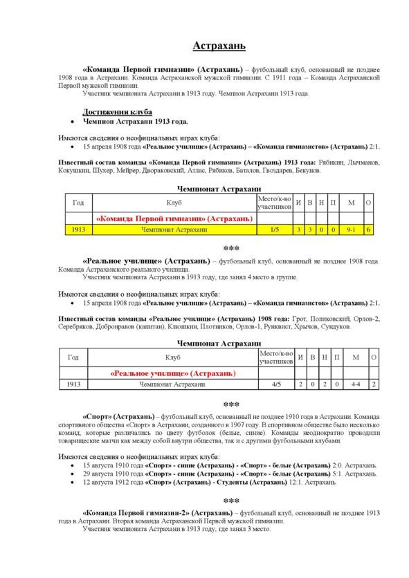 «Астраханская область» — это четвертое издание из серии книг-справочников по истории футбольных клубов (команд) регионов России. Истории футбола Астраханской области более 100 лет. За всё это время в регионе об истории футбола не выходило никаких фундаментальных издании, не считая календарей-справочников. По крайней мере я таких изданий не нашёл. В 2012 году вышел справочник «100 лет футболу Астрахани 1912—2012». Но более, чем громкого названия (если судить по содержимому материалу) там нет. Да, и история Астраханского футбола отодвинута в справочнике на 1912 год. Хотя первые документально зафиксированные игры в Астрахани проведены в 1908 году. Все справочники в основном посвящены основной команде региона «Волгарь» (Астрахань). Остальные команды региона в тени и местный чемпионат практически в изданиях не упоминается. Все сведения имеются только благодаря СМИ региона и местным любителям футбольной истории, которые скрупулёзно собирали её и сохраняли в своих архивах. Конечно, есть расхождения в некоторых источниках, но куда без этого… Надеюсь, и дальше футбольная история данного региона России будет только дополняться.