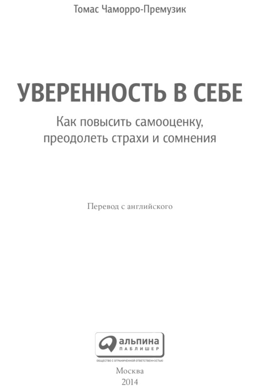 Уверенность в себе: Как повысить самооценку, преодолеть страхи и сомнения / Томас Чаморро-Премузик; Пер. с англ. — М.: АЛЬПИНА ПАБЛИШЕР, 2014.