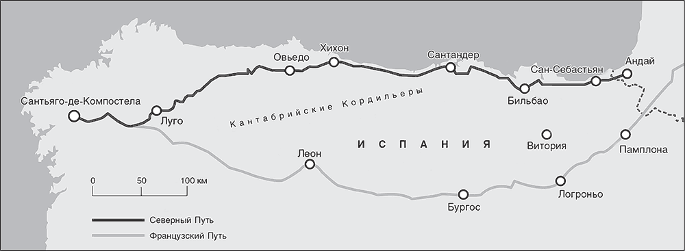 Если паломник выбрал исходный пункт, который находится всего в ста километрах от Сантьяго, он, вероятно, всего лишь охотник за сертификатом: сто километров – минимальное расстояние, которое надо пройти, чтобы получить знаменитую компостелу – сертификат на латыни, удостоверяющий, что человек совершил паломничество. К этому отличию, полученному с минимальной затратой сил, «настоящие» паломники относятся с плохо скрываемой иронией. На деле членами братства паломников-ходоков признают друг друга лишь те, кто ходил к святому Иакову по одному из больших испанских путей – от Пиренеев. Достойными местами начала Пути считаются города Сен-Жан-Пье-де-Пор, Андай и Сомпор. К ним добавляют еще Овьедо, проявляя терпимость ради славной истории. Хотя дорога из Овьедо, столицы провинции Астурия, гораздо короче, этот «камино примитиво» – первоначальный путь вызывает уважение по двум причинам. Во-первых, он проходит через высокие горы и отличается сильными перепадами высот; а во-вторых, и это главное, именно этим путем ехал в IX веке король Альфонсо, чтобы увидеть прославленные останки апостола Иакова, которые тогда только что обнаружил один монах.