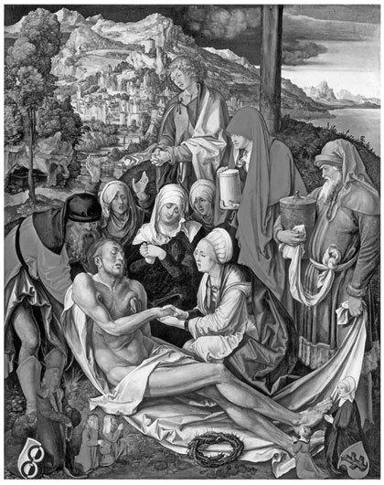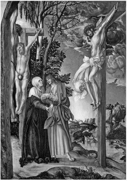 Рис. 3. Оплакивание Христа. Лукас Кранах Старший. Якобы 1503 год. Рядом с Голгофой – широкая река или морской пролив. Взято из [797:00], с. 86, илл. 48.