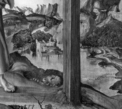 Рис. 13. Фрагмент. Большая река или пролив, на берегу которого происходит Поклонение Волхвов.