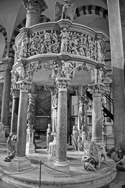 Рис. 27. Кафедра в Пизан-ском кафедральном соборе. Изготовлена Джованни Пизано (Giovanni Pisano). Якобы 1302–1310 годы. Фотография сделана А. Т. Фоменко в июне 2014 года.
