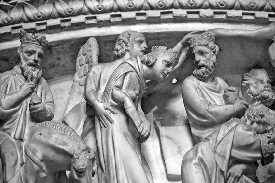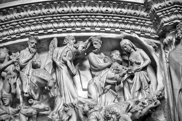Рис. 37. Поклонение Волхвов, изображенное на кафедре баптистерия в Пизе.