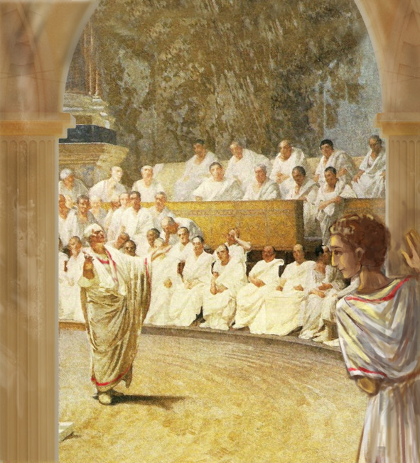 Юный Цицерон привстал на цыпочки и стал жадно слушать и смотреть, как выступает защитник Сципиона.