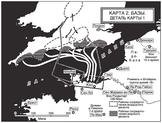 Здесь на пятый, критический год Второй мировой войны Роммелю предстояло готовиться к самому безнадежному сражению в своей карьере. Под его командованием находилось более полумиллиона солдат, которым предстояло оборонять простиравшееся почти на 800 миль побережье от противоприливных дамб Голландии до омываемых водами Атлантики берегов полуострова Бретань. Главные силы Роммеля – его 15-я армия – были сосредоточены на берегу Па-де-Кале в районе самого узкого места пролива, разделяющего Англию и Францию. Ночь за ночью бомбардировочная авиация союзных войск наносила по этому району удары. Обезумевшие от бомбежек ветераны 15-й армии с иронией рассказывали: им казалось, что передохнуть от бесконечных налетов можно только в расположении 7-й армии в Нормандии, куда, по их мнению, бомбы не падали.