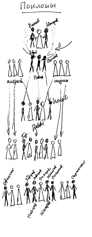 В нашем театре никто подобных и других научных исследований, связанных с психикой зрителя, не проводил, но тем не менее серьезной режиссурой все-таки накоплены некие важные закономерности, которые преждевременно возводить в ранг законов, каковых, кстати, в театре, в строгом смысле слова, вообще не существует. Однако есть полезные наблюдения, и о них стоит задуматься. Или сделать вид, что погрузился в пучину сложных полифонических раздумий. Это еще одна из необходимых черт режиссерской профессии: казаться чуть умнее и загадочнее, чем ты есть на самом деле. Может быть, это даже необходимо, потому что как бы ни были хороши взаимоотношения с актерами, определенный изначальный антагонизм существует. В глубине души и режиссер, и актерская труппа всегда мучаются некоторыми взаимными сомнениями. Демонстрация интеллектуального режиссерского превосходства, даже если оно отсутствует, возможно, своеобразный катализатор репетиционного процесса.