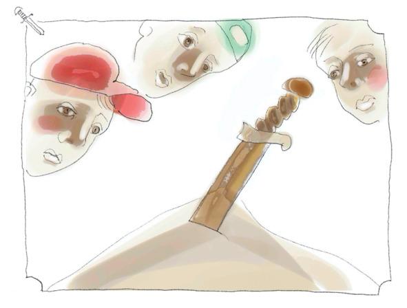 Ребята собрали свои инструменты, взяли меч и побежали к Оке.