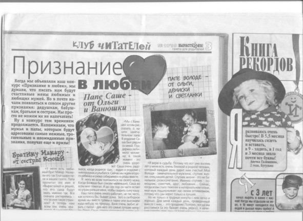 Газета «Вырастай-ка» с моим письмом и фотографией