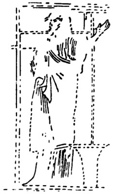 Fig. 8.—Weaver with the support K, Fig. 6; the woman appears to hold a beater-in in the right hand and a ball of thread in the left hand. Rosellini.