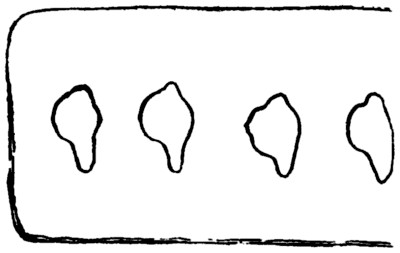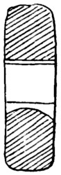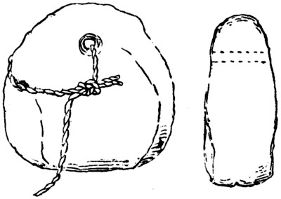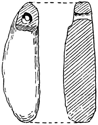 fresh water as net-sinkers, for it was a characteristic of primitive peoples, with whom time was of no account, to do their work thoroughly—what they made was intended to last, and chalk net-sinkers would not have lasted. That these were found in a limited quantity, I believe about seventeen in number, tends to show that they are warp weights, for only a few are required for every loom, in spite of the considerable number shown in the non-technical illustration of Penelope’s loom. Not being able to find any other use for these pieces of chalk, and judging that they are suitable for the purpose, I should say they are warp weights. In this case the weaver has made the most of what nature has given him; in other parts of England he has had to fashion the weight out of the rough chalk,
