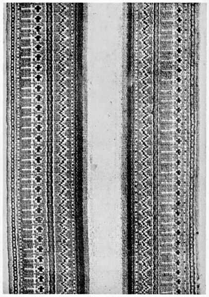 The selvedge F on the one side of the cloth and not on both sides is also interesting from the fact that selvedges do not appear on the Egyptian cloths until the XVIII. Dynasty circa B.C. 1600.