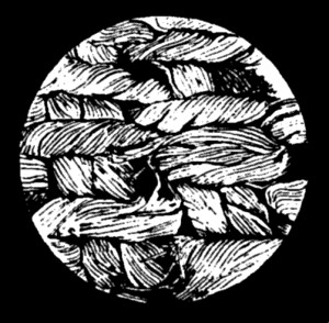 “The weavers sit on benches with their backs to the spectator. The artist has not dared to draw a back view of their heads, but has turned each man’s head to the right to show a profile. They are holding a heavy looking rod which looks like a ‘beater-in.’ One would expect to see a shuttle but perhaps this was too small an object for so rough a picture—perhaps the man at the smaller loom holds an exaggerated shuttle L in his right hand.