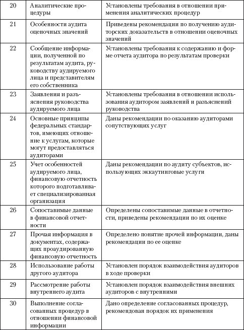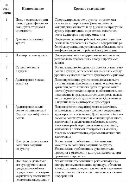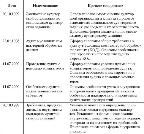 Таблица 2.5.Общероссийские аудиторские стандарты, одобренные комиссией при Президенте РФ