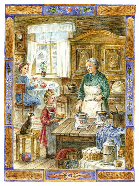 От бабушки мы впервые услышали и слово «Масленица». Она рассказывала, что в старину на Масленицу ели блины и утром, и днём, и вечером – и так целую неделю подряд. Мама возражала: «Детям вредно есть блины неделю подряд!» Но бабушка не уступала: «Наши деды ели блины всю Масленицу, были здоровые и добрые».