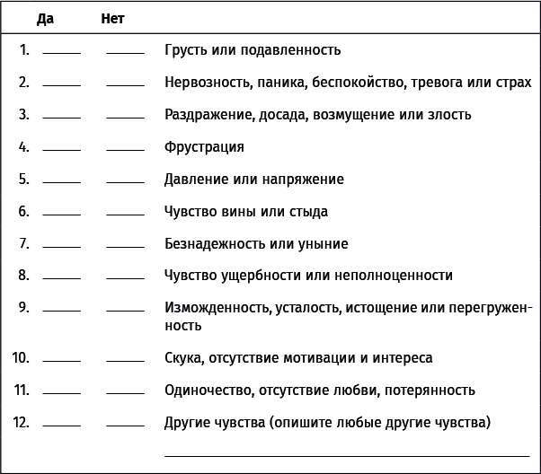 А теперь расскажите мне, какие негативные чувства вы испытывали, будучи в состоянии стресса. Просто отметьте «да» или «нет» в каждом пункте.