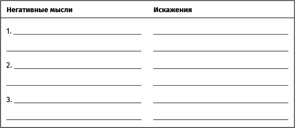 Запишите примеры искажения реальности, которые вы обнаружили в своих мыслях: