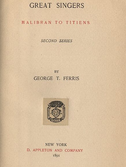 GREAT SINGERS, SECOND SERIES, MALIBRAN TO TITIENS.