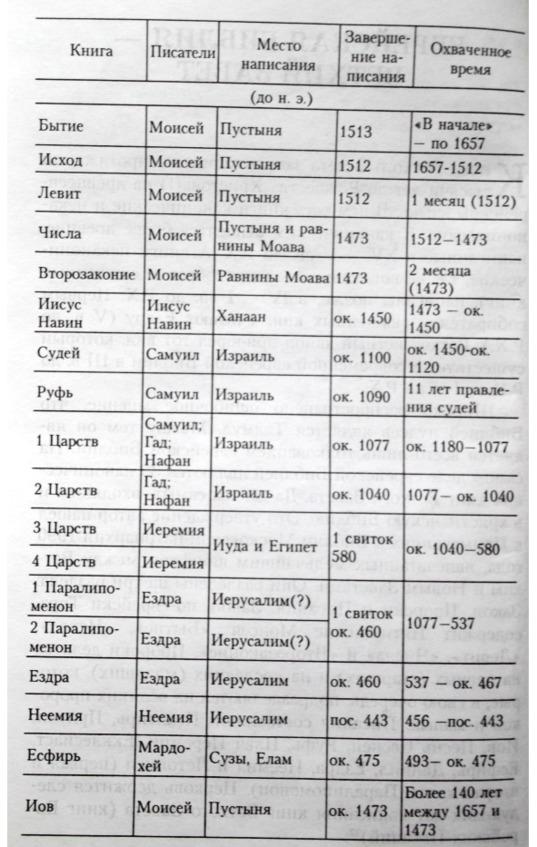 Церковь держится следующих дат написания книг Ветхого Завета (книг Еврейских Писаний) 27: