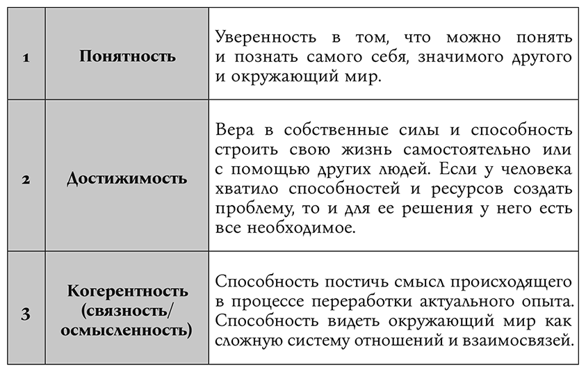 Суть салютогенетического подхода Антоновски выражается в трех условиях: